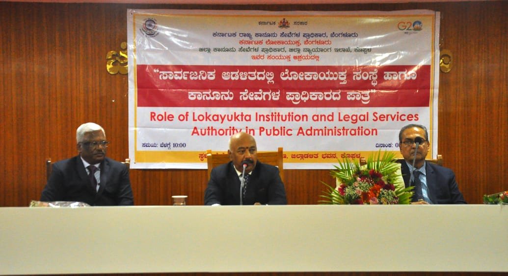 ಕೊಪ್ಪಳ ಅಕ್ಟೋಬರ್ 08 (ಕರ್ನಾಟಕ ವಾರ್ತೆ): ಸಾರ್ವಜನಿಕ ಆಡಳಿತದಲ್ಲಿ ಲೋಕಾಯುಕ್ತ ಸಂಸ್ಥೆ ಹಾಗೂ ಕಾನೂನು ಸೇವೆಗಳ ಪ್ರಾಧಿಕಾರದ ಪಾತ್ರ ವಿಷಯದ ಕುರಿತು ಕರ್ನಾಟಕ ರಾಜ್ಯ ಕಾನೂನು ಸೇವೆಗಳ ಪ್ರಾಧಿಕಾರ ಬೆಂಗಳೂರು, ಕರ್ನಾಟಕ ಲೋಕಾಯುಕ್ತ ಬೆಂಗಳೂರು, ಕೊಪ್ಪಳ ಜಿಲ್ಲಾ ಕಾನೂನು ಸೇವೆಗಳ ಪ್ರಾಧಿಕಾರ, ಜಿಲ್ಲಾ ನ್ಯಾಯಾಂಗ ಇಲಾಖೆ ಇವರ ಆಶ್ರಯದಲ್ಲಿ ಅಕ್ಟೋಬರ್ 8ರಂದು ಕೊಪ್ಪಳ ಜಿಲ್ಲೆಯ ನ್ಯಾಯಾಧೀಶರಿಗೆ ಕಾನೂನು ಸಾಕ್ಷರತಾ ಕಾರ್ಯಕ್ರಮ ನಡೆಯಿತು.