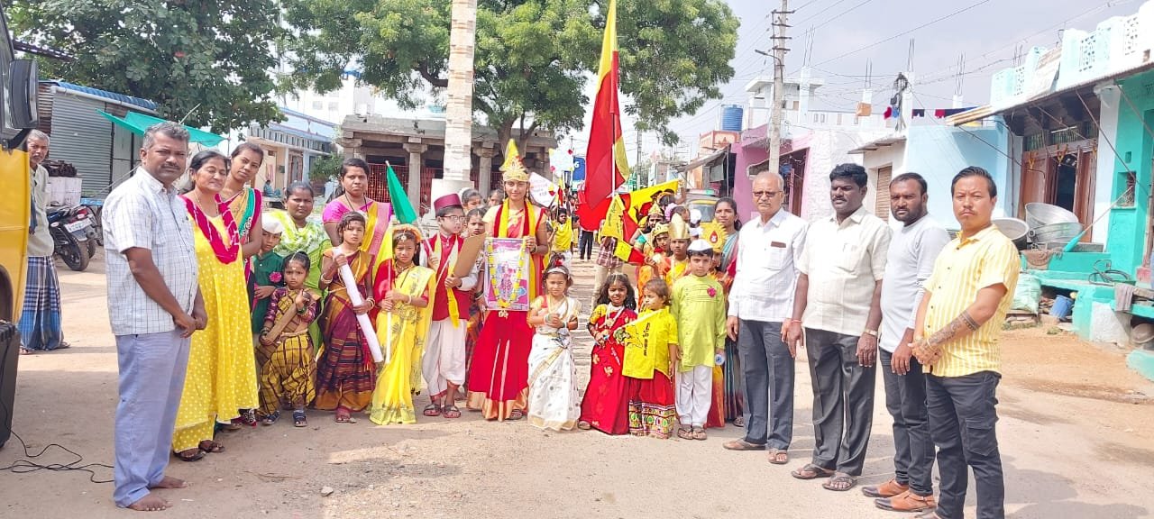 ಕನ್ನಡ ಸಾಹಿತ್ಯ ಪರಿಷತ್ತಿನ ತಾಲ್ಲೂಕು ಘಟಕದ ಅಧ್ಯಕ್ಷ ಮೆಹಬೂಬಹುಸೇನ ಮಾತನಾಡಿ ಕನ್ನಡ ಭಾಷೆಯು ಸುಲಿದ ಬಾಳೆಹಣ್ಣಿನಂತೆ ಇದ್ದು ಅದರ ವಿಶಿಷ್ಟತೆಯನ್ನು ಪ್ರತಿಯೊಬ್ಬರು ತಿಳಿದುಕೊಳ್ಳಬೇಕೆಂದು ಹೇಳಿದರು. ಅನ್ಯ ಭಾಷೆಗೆ ಹೋಲಿಸಿಕೊಂಡರೆ ಕನ್ನಡವನ್ನು ಸರಳವಾಗಿ ಕಲಿಯಲು, ಬರೆಯಲು ಹಾಗೂ ಮಾತನಾಡಲು ಸಾಧ್ಯವಿದೆ ಎಂದರು. ಗೌರವ ಕಾರ್ಯದರ್ಶಿ ಕನಕರೆಡ್ಡಿ ಕೆರಿ, ನಿವೃತ್ತ ಮುಖ್ಯಶಿಕ್ಷಕ ಶ್ರೀಶೈಲ ಪಾಟೀಲ, ಶಿಕ್ಷಕ ಪ್ರಶಾಂತ ಸೇರಿದಂತೆ ಶಿಕ್ಷಕರು ಇದ್ದರು. ವಿದ್ಯಾರ್ಥಿಗಳು ಕಲ್ಮಠದಿಂದ ರಾಜಬೀದಿ ಸೇರಿದಂತೆ ಪಟ್ಟಣದ ವಿವಿಧ ಬೀದಿಗಳಲ್ಲಿ ಕನ್ನಡ ಭಾಷೆಯ ಕುರಿತು ಜಾಥಾ ನಡೆಸಿ ಜಾಗೃತಿ ಮೂಡಿಸಿದರು. ನಾಡು ನುಡಿಗೆ ಸಂಬಂಧಿಸಿದಂತೆ ಘೋಷಣೆ ಕೂಗಲಾಯಿತು. ವಿದ್ಯಾರ್ಥಿಗಳು ವಿವಿಧ ವೇಷಭೂಷಣ ಧರಿಸಿ ಗಮನ ಸೆಳೆದರು. ಕನಕಾಚಲಪತಿ ದೇವಸ್ಥಾನದ ಆವರಣದಲ್ಲಿ ಸಾಮೂಹಿಕ ನೃತ್ಯ ಪ್ರದರ್ಶಿಸಲಾಯಿತು.