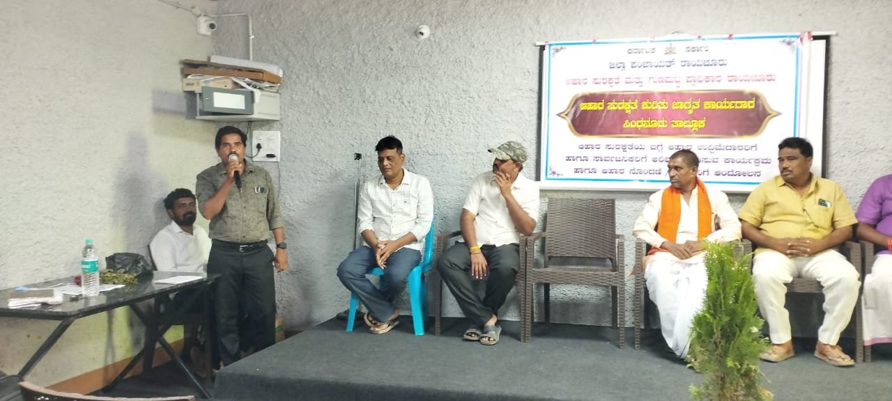 ಸಿಂಧನೂರು :- ಕಲಬರಕೆ ಇಲ್ಲದ ಆಹಾರ ನೀಡೋಣ ಇದು ಉದ್ಯಮದಾರರ ಮೂಲ ಮಂತ್ರವಾಗಬೇಕೆಂದು ತಾಲೂಕ ಆಹಾರ ಸುರಕ್ಷತಾ ಅಧಿಕಾರಿ ಸುರಕ್ಷಿತ ಅಧಿಕಾರಿ ಗುರುರಾಜ್ ರವರು ಆಹಾರ ಸುರಕ್ಷತೆಯನ್ನು ಕುರಿತು ಜಾಗೃತಿ ಮೂಡಿಸಿದರು.