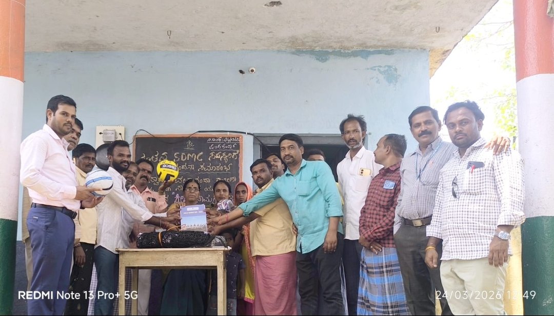 Distribution of sports equipment by Sri Swami Vivekananda Rural Development Sports and Cultural Youth Association to S.H.P.R. School, Hirebenakal village
